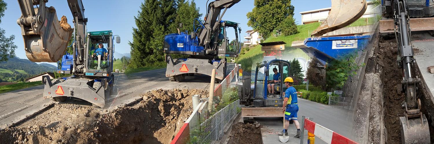 Der Tiefbau hat sich in den letzten Jahrzehnten vom Handwerk zu einer anspruchsvollen, interdisziplinären Aufgabe gewandelt, in der es die Bedürfnisse unterschiedlicher Interessengruppen zu beachten gilt. Eine enge Zusammenarbeit verschiedener Spezialisten ist dabei erforderlich. Das Know-how unserer erfahrenen Fachleute und der Einsatz des richtigen Inventars ermöglichen uns eine effiziente, kostengünstige und qualitativ hochwertige Bauausführung.